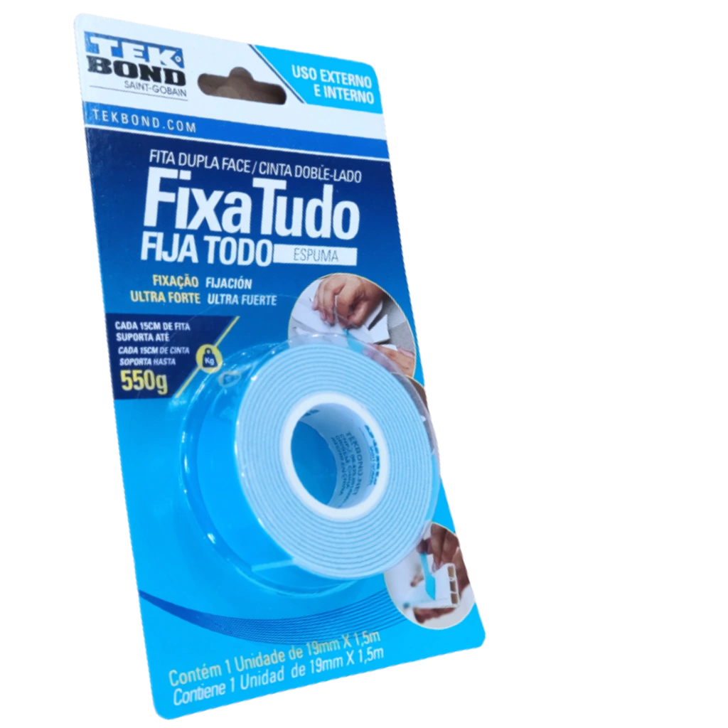 A Fita Fixa Tudo Espuma Tekbond foi desenvolvida para promover uma fixação ultra forte, em ambiente interno e externo, de maneira fácil, rápida e segura. Adere muito bem em madeira, parede, vidro, acrílico e metal.