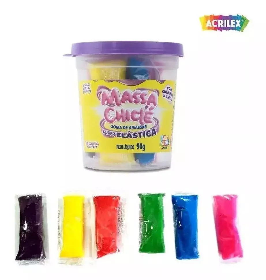A Massa Chiclé é a nova sensação em massa de modelar. Com textura e consistência de um chiclete de verdade, você pode moldar da forma que desejar, apresenta cores vibrantes que tornam a brincadeira mais divertida.